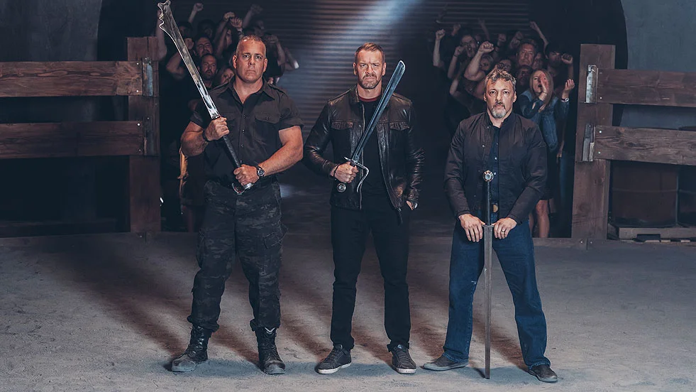 Knight Fight’s three judges are former professional wrestler Jay “Christian” Reso (there to add to add some star power from another “manly” fighting sport); retired Marine and experienced armored combatant Andre Sinou (who, along with Jaye Travis Brooks, Jr., is one of the chief American promoters of the sport of full-contact armored fighting); and John Clements (recruited for his expertise on medieval combat).