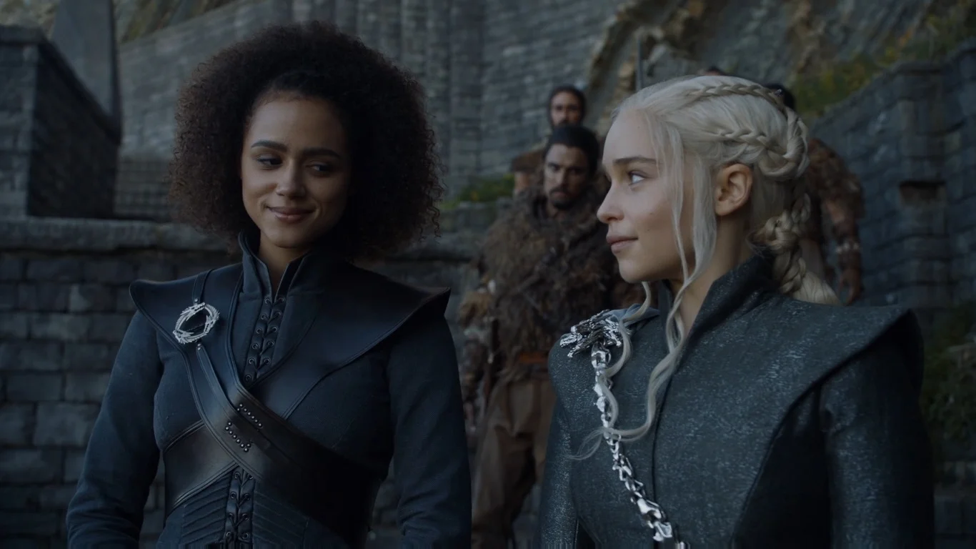 Obviously, this isn’t meant to let the author off the hook for problematic content. There’s a disturbing focus on sexualizing very young women throughout the books. Most, if not all, of the non-white characters are presented through an exoticized, Orientalist lens. Orientalism, according to critic Edward Said, represents what the West does not wish to acknowledge within itself, which it then displaces onto an exoticized East. The Dothraki and the inhabitants of Slaver’s Bay are, with a few exceptions (Grey Worm and Missandei, to a lesser extent Irri, Jhiqui, and Doreah), an undifferentiated horde meant to serve as mere window dressing for Daenerys Targaryen’s journey. There are almost no significant female friendships, in contrast to the many examples of male friendship. The closeness between Daenerys and Missandei, for instance, is an exception that proves the rule.